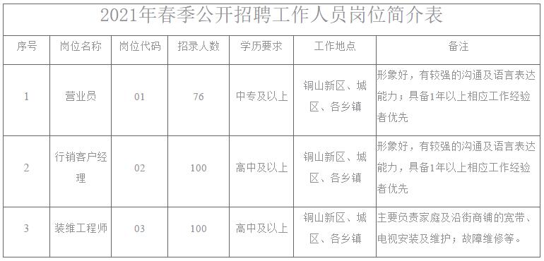铜山移动2021年春季公开招聘工作人员公告