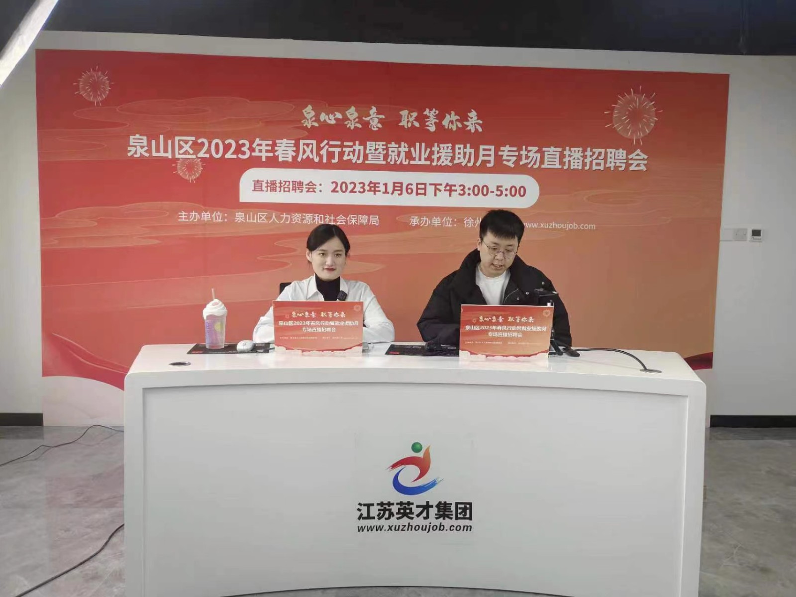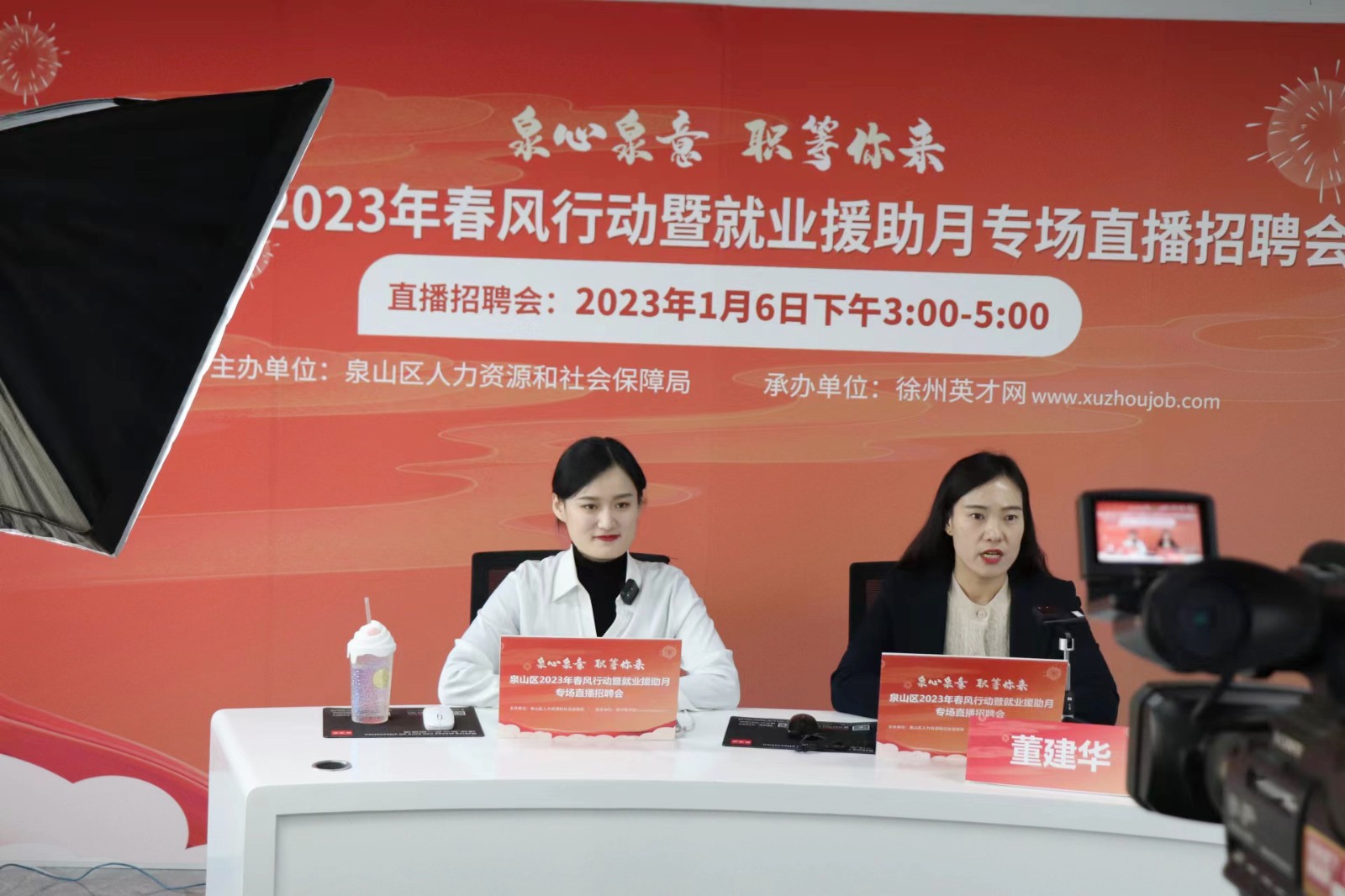 本次直播招聘会邀请了泉山区人力资源和社会保障局局长陈倩、泉山区公共就业和人力资源管理中心主任董建华莅临直播招聘会现场,另外邀请部分企业HR代表走进直播间,介绍企业概况及企业用工需求,通过云端技术正式开启2023年“抢人”大战