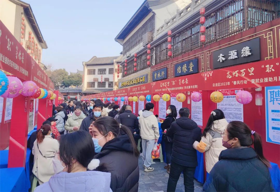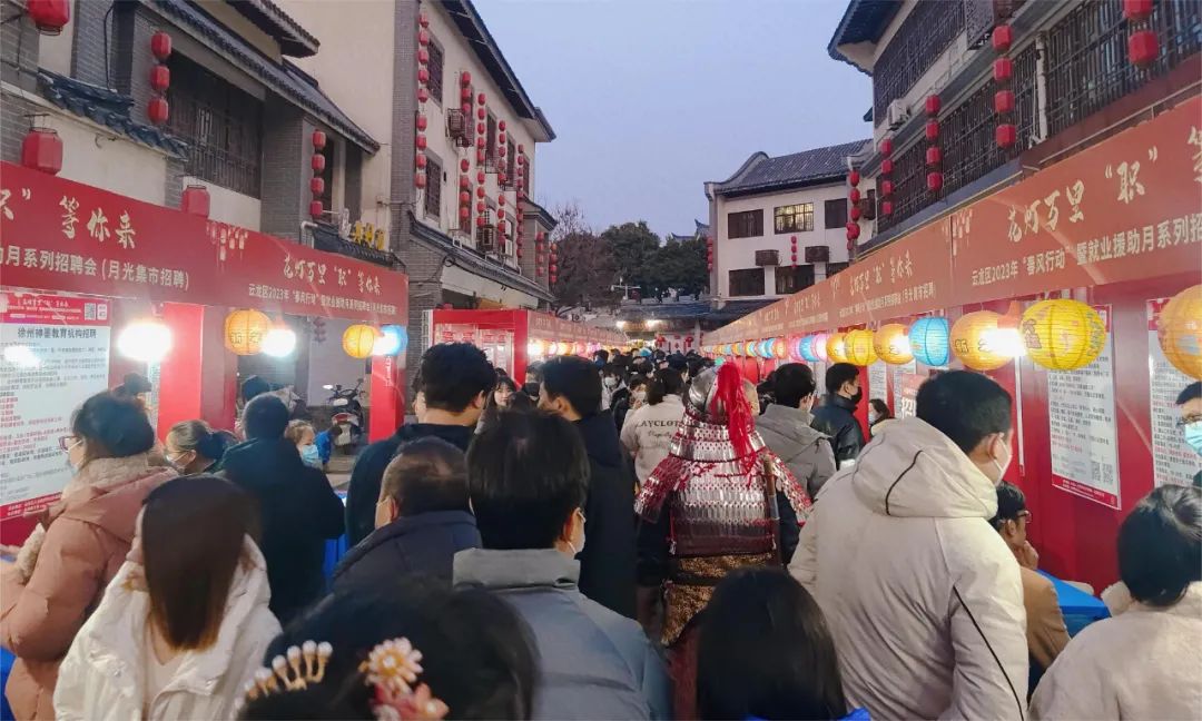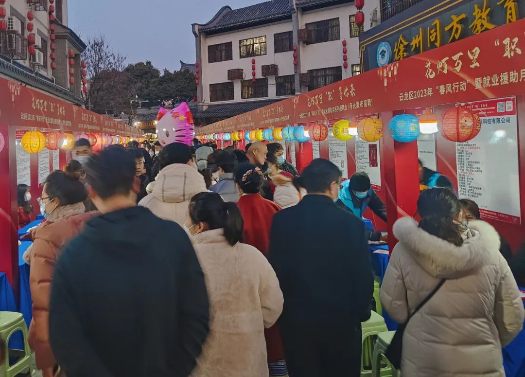 招聘会现场 尽管云龙区2023年“春风行动”直播招聘会刚刚结束,但企业与求职者热情不减。 本次招聘会邀请了绿地皇冠假日酒店、正博口腔、科诺医疗、中移铁通等64家知名企业参加,提供普工、设计师、外贸、运营等714个就业岗位,企业涉及医疗、教育、金融、生产制造、网络IT等多个行业,入场求职超3500人,初步达成意向500余人。 值此佳节 共度团圆 现场有求职者提到“前几天没在徐州只看了直播招聘会,但是没能更仔细的了解,在直播间听到正月十五有这样一场招聘会,正好和朋友一起过来看看,正好方便了我们找工作。” 招聘会上优质企业+丰富岗位,更是使得这场月光市集招聘会吸引了众多求职者的目光,前来各类人员络绎不绝。招聘会活动现场人头攒动,展位上纷纷排起人墙。 花灯装饰着整个招聘会现场,让现场充满了元宵佳节氛围,更吸引现场求职者朋友们的脚步,在这些花灯上面悬挂着优质企业和岗位,用别具一格的方式全方位助力到场求职找到好工作。 月光市集 现场招聘 本次招聘活动充分利用春节后求职的“高峰期”和企业招聘的“黄金期”。各行优质企业提供了生产、行政、运输、销售等诸多岗位,涉及到各行各业,给求职者较多选择。 现场的求职者和用人单位都笑容满面,进行了友好的沟通和交流,更有用人单位HR表示收到太多的元宵节祝福,是一次美好的机会。 接下来,将会有更多的招聘会活动, 欢迎广大求职者和企业踊跃参与。 共同描绘新年璀璨“薪”生活! END