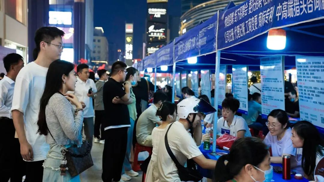 市中心作为繁华地带,吸引了大量年轻人前来消费和娱乐。3天以来鼓楼区人才夜市在开放、轻松的氛围中,“摆摊”亮出岗位,求职者像逛夜市一样寻找工作机会,招聘会将企业招聘、岗位推送和政策宣传等服务融合在一起,满足求职者在“家门口”实现就业择业的愿望,一站式求职的需求,将工作机会“送”到大家面前。