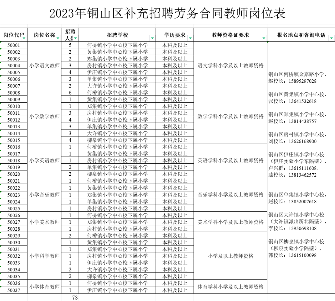 徐州铜山区招聘教师73人