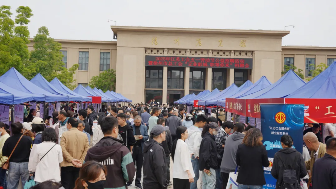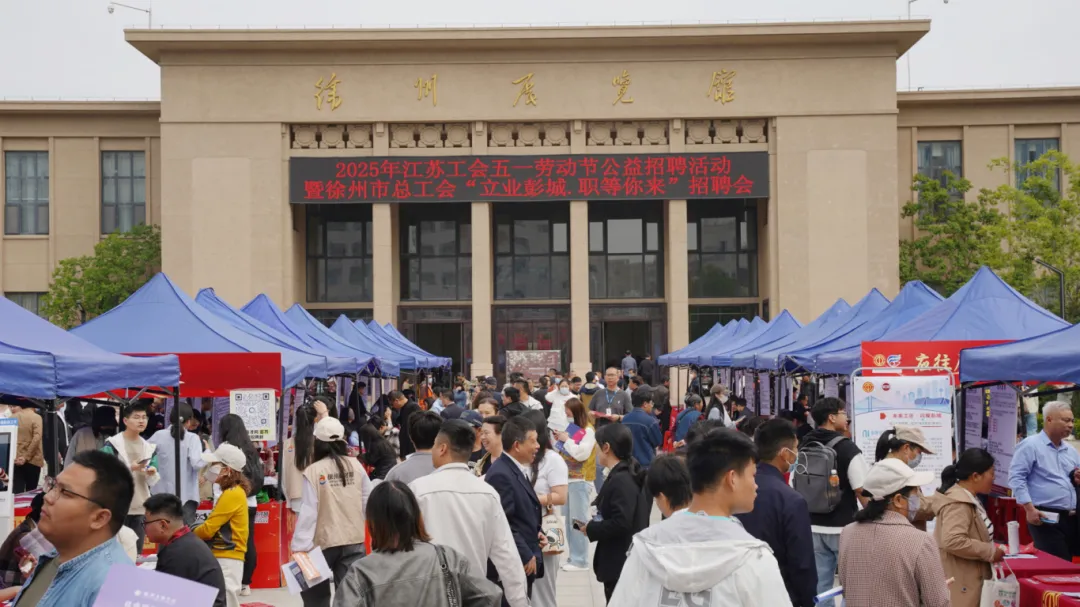 在五一劳动节即将来临之际,4月27日,由江苏省总工会主办的2025年江苏工会五一劳动节公益招聘活动暨徐州市总工会“立业彭城·职等你来”招聘会在徐州展览馆外广场盛大启幕。