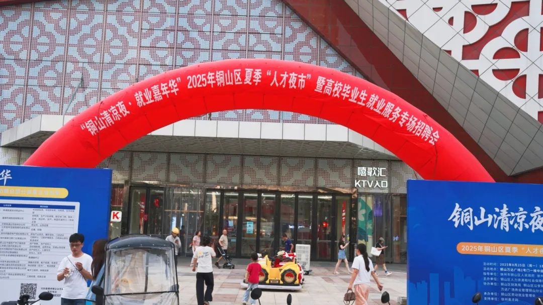 由铜山区人力资源和社会保障局、徐州高新区党群和社会工作部、铜山区退役军人事务局联合主办的“铜山清凉夜·就业嘉年华”2025年铜山区夏季”人才夜市“暨高校毕业生就业服务专场招聘会在铜山万达广场火热进行。