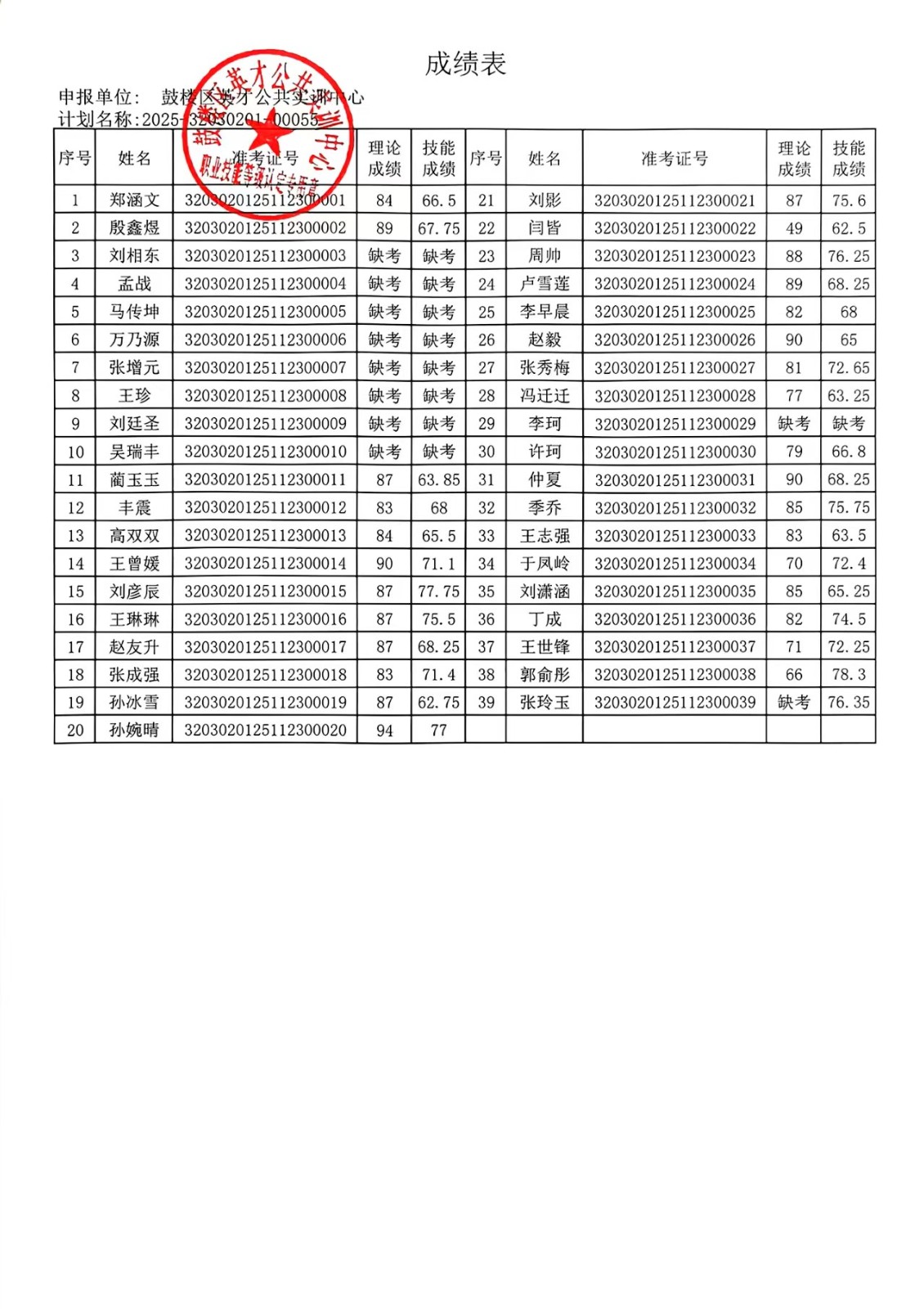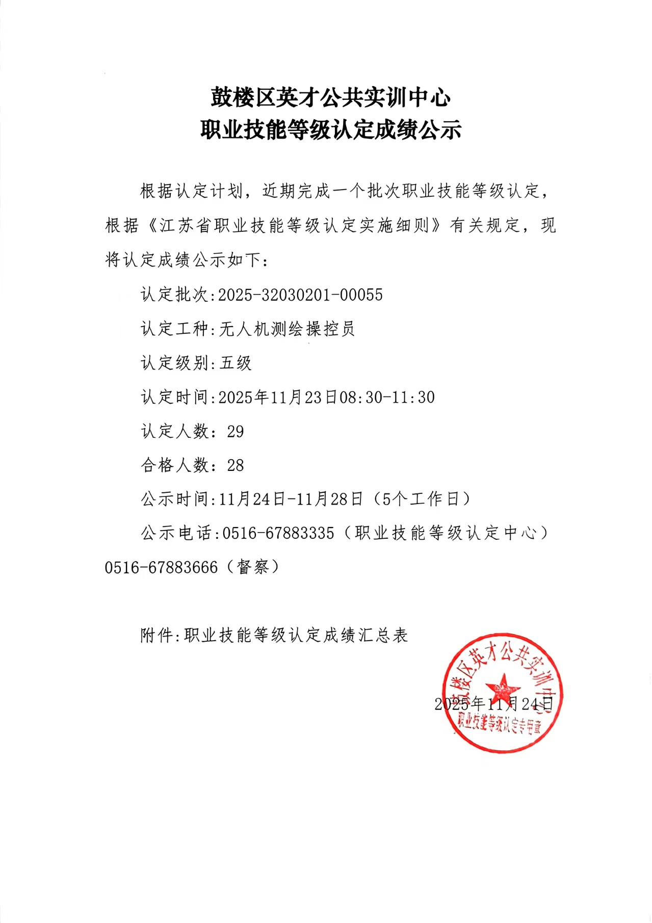 鼓楼区英才公共实训中心技能等级认定成绩公示-2025.11.23上午【25-55】